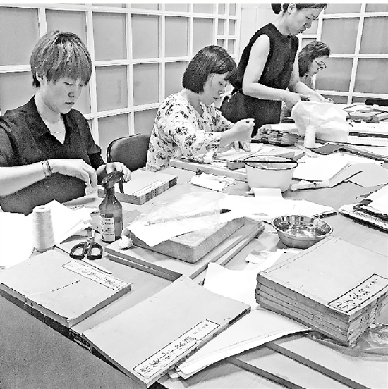 修復(fù)師們正在修復(fù)讀者送來(lái)的古籍。