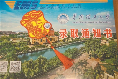 華南理工大學(xué)隨錄取通知書送給新生的禮物,則是一枚名為“鯉阿華”的書簽。該書簽以傳統(tǒng)剪紙畫為基礎(chǔ)元素,體現(xiàn)了華南理工濃厚的歷史底蘊和人文氣息;主體色調(diào)為紅色搭配黃色,熱烈、和諧,代表金榜題名的喜悅和吉祥如意;書簽設(shè)計融入了;、跳躍的“校寵”鯉魚、廣州標(biāo)志性的木棉花等元素,寓意莘莘學(xué)子完成了一個質(zhì)的飛躍,進入到華南理工大學(xué)。