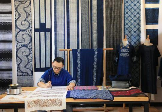 韋祥龍的家鄉(xiāng)位于黔南山區(qū),人口不過300萬,手工藝發(fā)達,但因交通閉塞鮮被外人知曉。在他開始傳承創(chuàng)業(yè)前,這項技藝已經(jīng)斷代,“過去布依族人都是穿手工編織的衣服,花色也都是扎染和楓香染。但現(xiàn)在大家慢慢丟棄了這樣的習慣,只有在重大節(jié)日或祭祀時才會再穿上這些布制衣服!