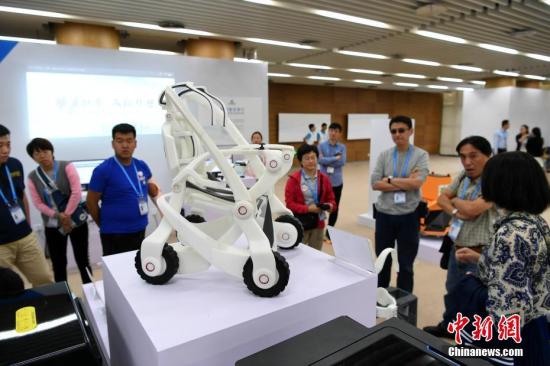 10月13日,第四屆中國“互聯(lián)網(wǎng)+”大學(xué)生創(chuàng)新創(chuàng)業(yè)大賽總決賽在廈門大學(xué)舉行。無人機(jī)、自助售飯機(jī)、人偶互動(dòng)、全息3D智能視頻、機(jī)器人輪椅、3D打印假肢手臂等大學(xué)生研發(fā)設(shè)計(jì)的產(chǎn)品亮相會(huì)場(chǎng),以“90后”為主的創(chuàng)新創(chuàng)業(yè)生力軍已全面發(fā)力,釋放出“青年+創(chuàng)新創(chuàng)業(yè)”的無窮力量。圖為3D打印個(gè)性化定制機(jī)器人輪椅展示。中新社記者 王東明 攝