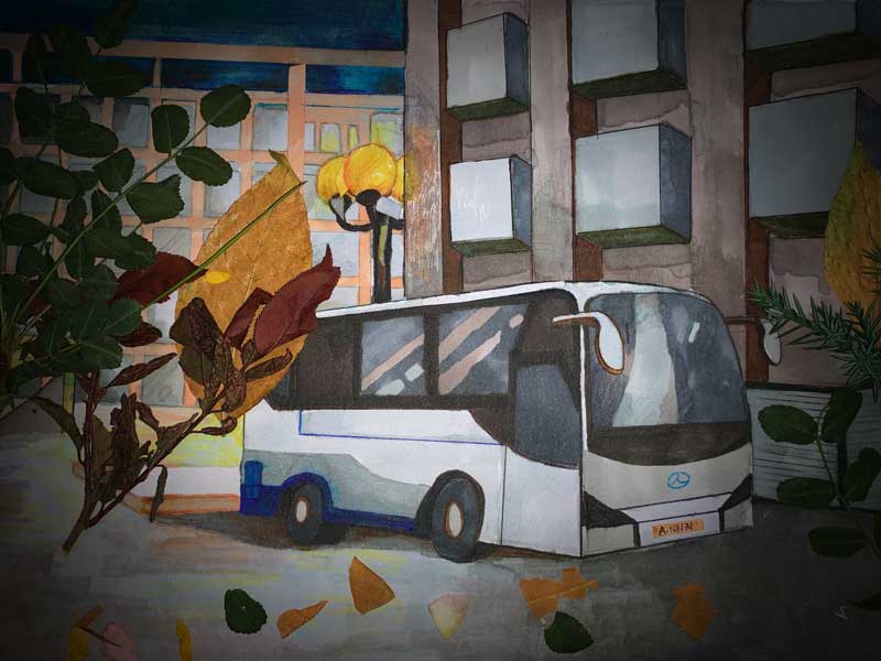 星空點點下,校車安靜的停駐