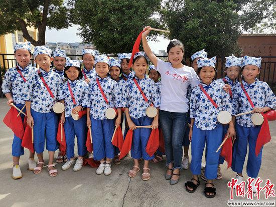 程風(fēng)和學(xué)生一起排練漁鼓舞。