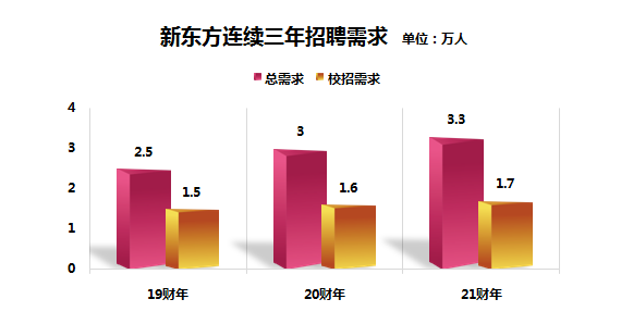 新東方連續(xù)三個財年招聘需求數(shù)量(注:新東方財年時間為6月1日-次年5月31日)(新東方供圖 央廣網(wǎng)發(fā))
