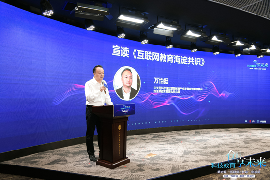 聯(lián)盟副理事長、好未來教育集團執(zhí)行總裁萬怡挺宣讀《互聯(lián)網教育海淀共識》(好未來供圖 央廣網發(fā))