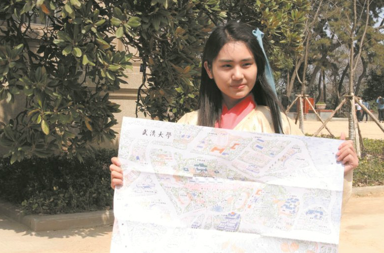 雷政說,此前他看到武大每年櫻花盛開時都有很多人賣櫻花圖案明信片,激發(fā)了他的靈感。去年年底,雷政和女友先到廈門、內(nèi)蒙古一些地方,了解手繪地圖產(chǎn)品制作,拜訪繪圖達人,還招募到了團隊中的設(shè)計師。為制造出精確地圖,雷政的團隊騎著自行車實地考察了半個月,咨詢專家和家屬區(qū)人員,收集齊足夠素材,趕在今年櫻花盛開前完成首批5000份成品。