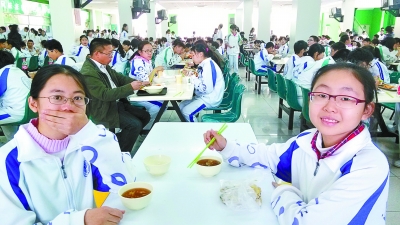 清華附中初一(11)班的楊雨辰(右),昨日以5.97元的總花銷成功度過一天。這一天從早到晚,她可謂處處小心,費盡所有心思。