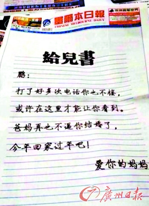 母海外報紙頭版尋子回家過年 不逼婚了回家過年吧