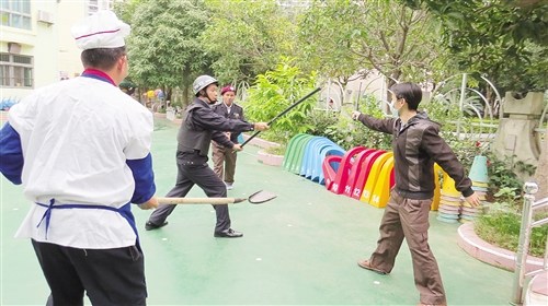 幼兒園保安及員工迎戰(zhàn)翻墻而入的“歹徒” 記者 賴有光 攝