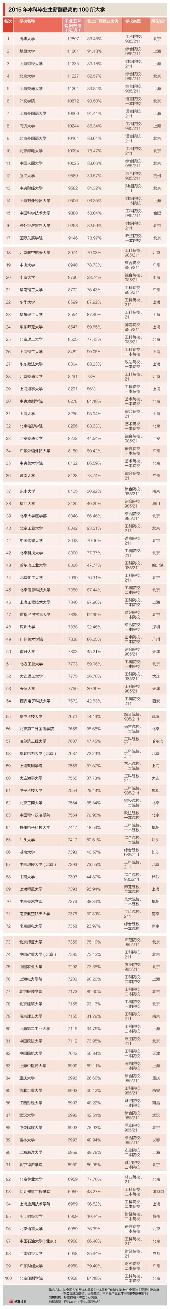 近日,標(biāo)準(zhǔn)排名(中國)研究院發(fā)布了《2015中國高校畢業(yè)生薪酬排行榜》。其中前十名分別為清華大學(xué)、復(fù)旦大學(xué)、上海財經(jīng)大學(xué)、北京大學(xué)、上海交通大學(xué)、外交學(xué)院、上海外國語大學(xué)、同濟大學(xué)、北京外國語大學(xué)、北京郵電大學(xué)。