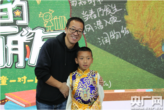 俞敏洪與藏族男孩向巴旺堆合影(央廣網(wǎng)發(fā) 主辦方供圖)
