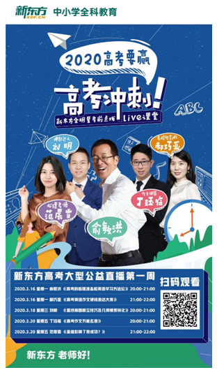 為了幫助考生在最后的高考沖刺階段更好地進(jìn)行備考,緩解壓力帶來的焦慮等情緒,近日新東方集結(jié)全國近30位高考名師,專門打造了針對高考生沖刺階段復(fù)習(xí)備考的全學(xué)科公益直播課程:高考沖刺——新東方全明星考前點(diǎn)撥live課堂,期待課程能夠成為考生們在校內(nèi)復(fù)習(xí)之外的有益補(bǔ)充,為他們贏得高考助一臂之力。