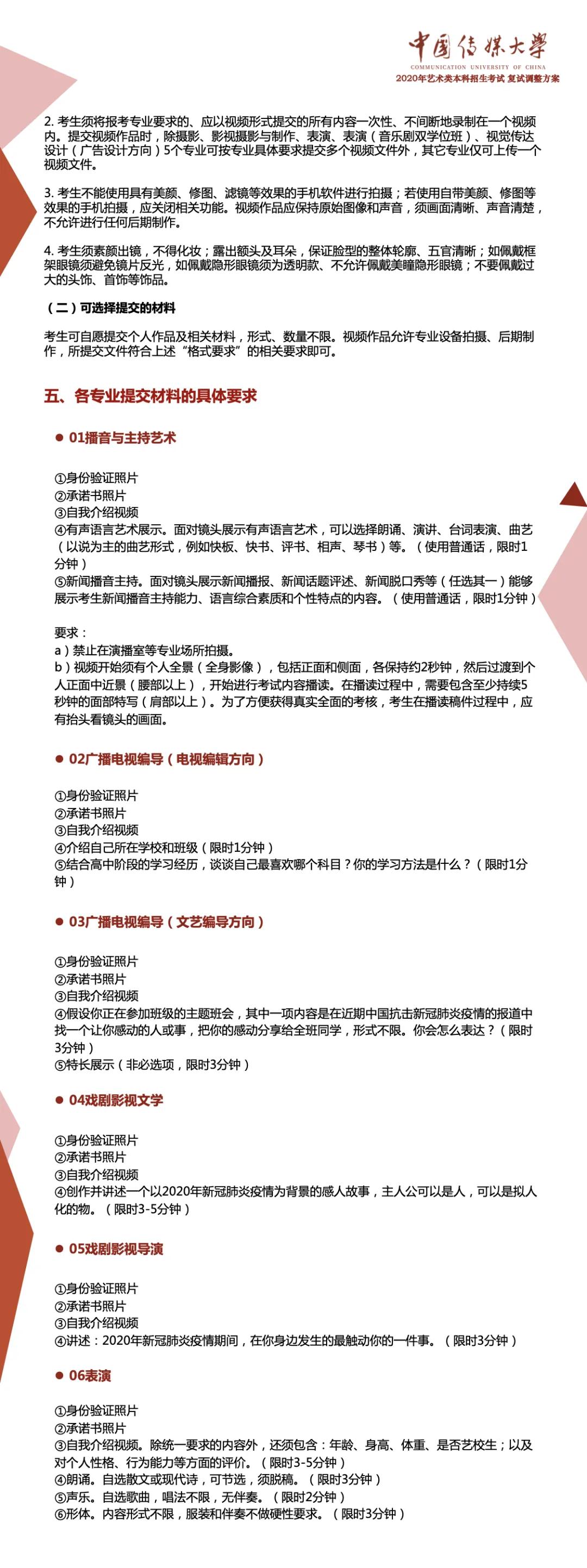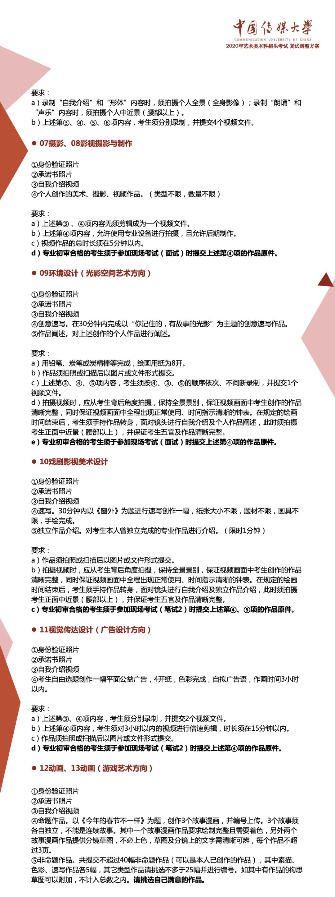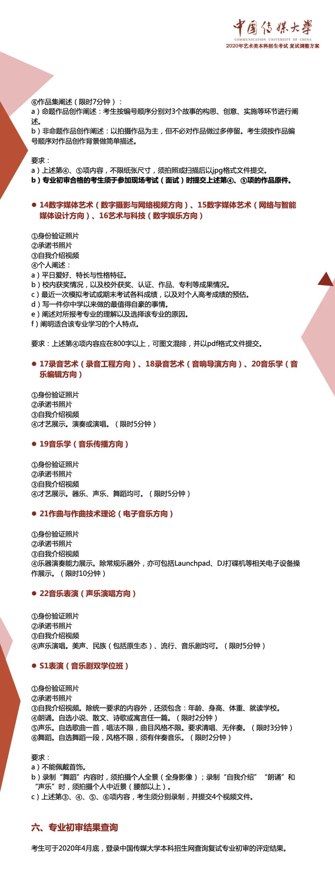 根據(jù)教育部及北京市有關(guān)藝術(shù)類專業(yè)招生考試的決策部署,切實(shí)保障師生生命安全和身體健康,結(jié)合中國傳媒大學(xué)藝術(shù)類專業(yè)人才選拔和培養(yǎng)實(shí)際需要,經(jīng)學(xué)校研究決定,對(duì)2020年藝術(shù)類專業(yè)考試復(fù)試方案作如下調(diào)整: