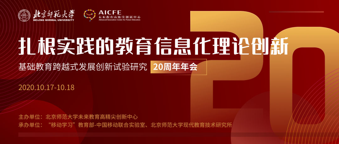 央廣網(wǎng)北京10月10日消息 為推進信息技術與基礎教育教育的雙向融合,促進學生德智體美勞全面發(fā)展,值此“基礎教育跨越式發(fā)展創(chuàng)新試驗研究”歷時已滿廿年之際,北京師范大學未來教育高精尖創(chuàng)新中心擬定于2020年10月17日至18日在線召開“扎根實踐的教育信息化理論創(chuàng)新”主題研討會。