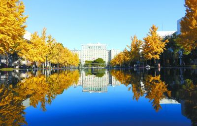 原標(biāo)題:清華大學(xué)添新景:主樓倒映池水中