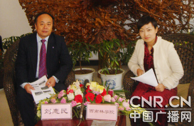 主持人:大家好!這里是中央人民廣播電臺中國廣播網教育頻道的現場直播節(jié)目,我是徐小璐。大家首先看一下我背后的根雕,非常的美。西南林業(yè)學院是西南唯一的林業(yè)本科院校,坐在我身旁的是這所學院的院長,劉惠民先生。您好! 劉院長:您好!