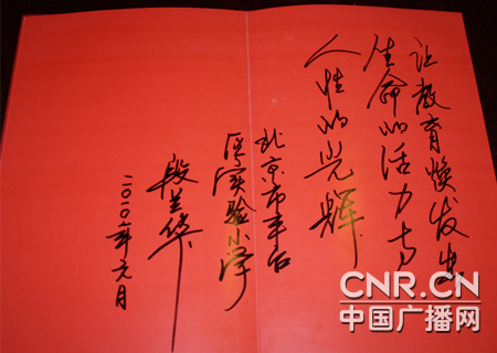 豐臺區(qū)實驗小學校長 段蘭華題詞 主持人:最后請您描繪一下未來幾年豐臺實驗小學有什么樣的發(fā)展? 段校長:剛才提到了豐臺實驗小學的新環(huán)境育人辦學特色,在未來的發(fā)展當中,我們還要強化這個特色,讓這個特色更突顯,讓全體師生更受益,因此在2009年,我們進一步深化這個發(fā)展主題,提出了陽光教育的理念,陽光教育的理念植根于新環(huán)境育人,它的基本前提是尊重教育,真正的尊重教師,尊重孩子,尊重他的人格,尊重他的差異。目前,教育存在著方方面面的問題,雖然教育的發(fā)展形勢很好,但教育差異化現(xiàn)象比較嚴重,而陽光的特點是把溫暖灑遍任何一個角落,是最公平的,因此我們把他賦予到教育工作當中,隨之構成了陽光教育體系,陽光教育構架。 比如說陽光校園,我們的校園環(huán)境,今后就按照陽光校園的方向繼續(xù)建設與優(yōu)化; 陽光文化,我們談到的幾個要素,都是尊重人的發(fā)展,自然的并入陽光教育的理念; 陽光管理,比如學校的民主化管理如何,教育管理的一些管理策略,管理方法是不是從群眾中來,到群眾中去,現(xiàn)在有科學學習發(fā)展觀,以人為本,全面協(xié)調可持續(xù)發(fā)展,那么這些都可以融入到管理當中; 陽光課堂就是以尊重為前提,孩子有方方面面的差異,再好的學校任何一個教學班,總有優(yōu)等生與差等生。能不能公平的面對每一個孩子,這就是我們陽光課堂要研究的內(nèi)容。陽光課堂首先用陽光教育理念去引導,另外要尊重孩子,充分調動學生自主探究,獲得知識,更重要的是獲得能力。學生固然要學習很多知識,但是更重要的是教給學生獲得這些知識的能力,學生在老師的引導下,自主探究,所掌握的知識往往是牢固的,記憶是深刻的。讓學生感到是自己學會的,很有成就感,其實老師有精心的設計,有精心的引導。陽光體育是教育部提出來的一個概念,正好也列入我們這個體系, 像我們說的輪滑、跳繩、乒乓球、橋牌、武術,也包括智力運動,這是陽光體育活動,整個兒構成了這樣一個體系。方方面面的教育行為、教育環(huán)境共同作用于學生,學生就可以在這份教育陽光的沐浴下更加健康的成長。 主持人:陽光教育的確非常的明亮,也會照亮每個孩子每個家長每個老師的心靈,再次感謝段校長的到來。電腦旁的您如果還有什么樣的問題想跟段校長溝通交流,您可以在節(jié)目之后留言,段校長都會給您一一作答,感謝您,我們下期節(jié)目再見。 段校長:謝謝主持人,謝謝廣大觀眾。 |