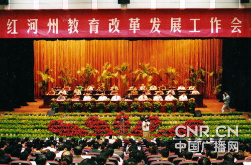 云南紅河教育局局長(zhǎng) 潘光偉 主持人:各位觀眾朋友大家好,這里是中央人民廣播電臺(tái)中國(guó)廣播網(wǎng)教育頻道的現(xiàn)場(chǎng)直播節(jié)目,我是徐小璐。紅河哈尼族彝族自治州是云南省重工業(yè)基地之一,有中國(guó)著名的西都——個(gè)舊。紅河州的素質(zhì)教育發(fā)展很好,那么整體的教育發(fā)展如何呢?今天演播室非常的榮幸請(qǐng)來了我們的老朋友紅河州教育局局長(zhǎng)潘光偉先生。歡迎您。 潘局長(zhǎng):各位觀眾朋友好,主持人好。 主持人:見到您非常親切,上次專訪的情景歷歷在目。今天先請(qǐng)您跟大家把紅河州整體的教育情況來介紹一下。 潘局長(zhǎng):非常榮幸。紅河地處云南邊陲,是一個(gè)哈尼族彝族自治州。紅河州位于云南東南部,有450萬人口,是云南重要的一個(gè)老工業(yè)基地,而且具有非常悠久的文明開化史。從元代就正式有了“官學(xué)”。到如今,仍有一些奇特的少數(shù)民族還處于從原始社會(huì)直接過渡到社會(huì)主義社會(huì)的狀況。 在現(xiàn)代教育的發(fā)展當(dāng)中,紅河州的黨委、政府始終把教育優(yōu)先發(fā)展作為“科技強(qiáng)州”、“素質(zhì)強(qiáng)州”、“人才強(qiáng)州”的重要的戰(zhàn)略舉措,來推動(dòng)全州教育事業(yè)的發(fā)展。解放以來,特別是改革開放30年來,紅河州的教育隨著經(jīng)濟(jì)社會(huì)的發(fā)展也取得了長(zhǎng)足的進(jìn)步。教育規(guī)模不斷擴(kuò)大,現(xiàn)代國(guó)民教育體系基本成型。廣大人民群眾人均受教育年限接近8年。這是歷史性的成就。