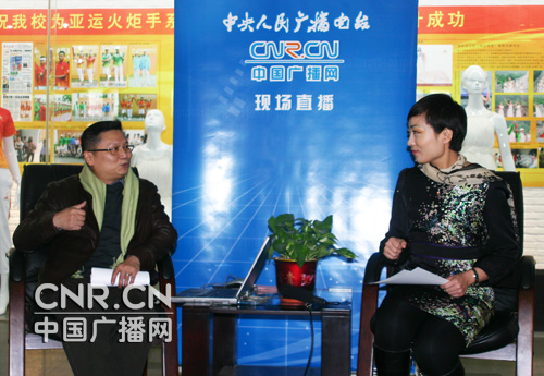 廣州市紡織服裝職業(yè)學(xué)校赤坭校區(qū)行政樓 主持人:觀眾朋友大家好,這里是中央人民廣播電臺(tái)中國廣播網(wǎng)教育頻道的現(xiàn)場(chǎng)直播節(jié)目,我是徐小璐。今天,我們把演播室搬到了廣州一所學(xué)校。大家可以看到我們周圍有很多漂亮的服裝圖片,這所學(xué)校就是廣州市紡織服裝職業(yè)技術(shù)學(xué)校。去年,廣州亞運(yùn)會(huì)火炬?zhèn)鬟f者的服裝——驕羊圣火,在社會(huì)上引起廣泛專注,這套服裝就出自于廣州市紡織服裝職業(yè)學(xué)校。今天,我們非常榮幸地請(qǐng)來了這所學(xué)校的校長王劍雄先生。歡迎您!