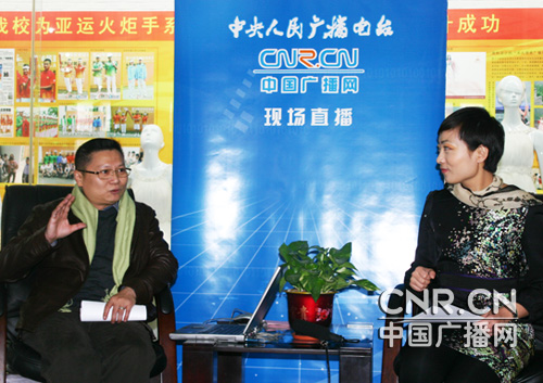 廣州市紡織服裝職業(yè)學(xué)校校長:王劍雄(左) 本臺(tái)記者:徐建娟(右) 近年來,我們學(xué)校大力貫徹落實(shí)科學(xué)實(shí)踐發(fā)展觀,根據(jù)行業(yè)發(fā)展的需求,調(diào)整辦學(xué)觀念,走“擴(kuò)大規(guī)模、強(qiáng)化特色、注重內(nèi)涵”的可持續(xù)發(fā)展道路,取得一系列的成績。受到社會(huì)和用人單位的歡迎。多年來,學(xué)校為社會(huì)輸出了大量的實(shí)用型人才,走上工作崗位后許多學(xué)生已成為紡織服裝企業(yè)的領(lǐng)導(dǎo)干部、管理人員和技術(shù)骨干。 主持人:去年廣州亞運(yùn)會(huì)紡校設(shè)計(jì)的火炬?zhèn)鬟f者的“驕羊圣火”系列服裝吸引了眾多目光,能不能在這方面介紹一下?