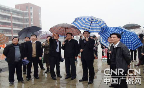 校長吳華安(前排右)陪同江西省副省長孫剛(第二排中)、新余市委書記李安澤(第二排右)、新余市委常委宣傳部長廖蘭芳(第二排左二)、分宜縣委常委宣傳部長李冰平(第三排左一)、分宜縣副縣長李華(第二排左一)到學(xué)校檢查指導(dǎo)工作 從辦學(xué)條件上看,根據(jù)多年的生源分析,再興建一所招生規(guī)模達(dá)4500人的學(xué)校,加上現(xiàn)有的分宜二中、三中、五中和一中初中部,完全能夠滿足所有初中生進(jìn)城。從經(jīng)濟(jì)條件上看,實(shí)施“初中進(jìn)城”工程,新建第六中學(xué)約需投資1.2億元,每年運(yùn)轉(zhuǎn)經(jīng)費(fèi)100萬元左右,縣財(cái)政完全有能力承擔(dān)。從交通條件上看,近幾年通過大力實(shí)施村村通油路、通客車工程,全縣實(shí)現(xiàn)了100%的村委通油路、通客車,距離縣城最遠(yuǎn)的村莊進(jìn)城只需50分鐘,學(xué)生進(jìn)城返家都很方便。 記者:初中進(jìn)城,讓農(nóng)家子弟享受到公平教育,請問軟件和硬件方面得到哪些改善?體現(xiàn)在哪些地方? 吳華安:通過實(shí)施初中進(jìn)城方案,分宜六中這所投資1.2億元、占地面積為186畝、建筑面積為64766平方米的新學(xué)校,硬件設(shè)施在周邊地市走在前面,甚至與沿海城市相比也并不遜色,尤其是學(xué)校的內(nèi)部設(shè)施也極大提升:政府投資給老師每人配了一臺手提電腦,每個(gè)教室都安裝了多媒體投影儀,還有理化生實(shí)驗(yàn)室、儀器室、微機(jī)室、語音室、廣播室、閱覽室、監(jiān)控室、音體美教室、室內(nèi)體育館、室外運(yùn)動場等,都是按照國家標(biāo)準(zhǔn)高質(zhì)量進(jìn)行裝備。 與硬件建設(shè)相比,軟件建設(shè)更讓學(xué)生滿意。為配強(qiáng)師資,2010年,分宜縣從農(nóng)村中學(xué)選調(diào)了180名教師及面向社會招考44名教師進(jìn)校任教。目前,分宜六中有教職工230人,其中本科學(xué)歷占73.4%,達(dá)標(biāo)率為100%。 圍繞辦成“江西一流,獨(dú)具特色的初中進(jìn)城示范!,學(xué)校實(shí)行寄宿制全封閉管理,全部學(xué)生免費(fèi)住宿,并配備了生活教師,與學(xué)生同吃同住,24小時(shí)親情監(jiān)護(hù)。為了充分保護(hù)學(xué)生的安全,學(xué)校完善安全機(jī)構(gòu)和各種制度。加強(qiáng)監(jiān)督和檢查,消除各種安全隱患,致力營造良好的學(xué)習(xí)生活環(huán)境,制度化、規(guī)范化、人文化的管理模式日漸形成,讓農(nóng)家子弟與城市孩子享受到了同等的教育質(zhì)量,農(nóng)村學(xué)生的綜合素質(zhì)得到很大的提高。 記者:初中進(jìn)城,讓農(nóng)家子弟享受到與城里一樣的優(yōu)質(zhì)教育資源,請問學(xué)生要多出費(fèi)用嗎?這樣會不會增加農(nóng)民的經(jīng)濟(jì)負(fù)擔(dān)呢? 吳華安:剛開始,許多農(nóng)民在電視、廣播上看到政府花了一個(gè)多億建了一所這么漂亮的學(xué)校,學(xué)費(fèi)肯定很貴。9月開學(xué)之初,當(dāng)學(xué)生家長在報(bào)到時(shí),得知自己只要交空白作業(yè)本費(fèi)9.25元,家長說什么也不相信這是事實(shí)。 其實(shí),原先農(nóng)民的這些擔(dān)心很正常。分宜六中的建校成本由政府承擔(dān),學(xué)生進(jìn)城讀書增加的支出有限。為使學(xué)校輕裝上陣,政府每年補(bǔ)助學(xué)校水電費(fèi)120萬元,給予學(xué)校20名臨時(shí)用工指標(biāo),每人每年財(cái)政安排預(yù)算1.2萬元,計(jì)24萬元。 學(xué)生住的是公寓,24小時(shí)供應(yīng)熱水,熱水供應(yīng)實(shí)行智能化管理,一生一卡,一個(gè)學(xué)生洗一次熱水澡只要電費(fèi)成本費(fèi)0.15元。