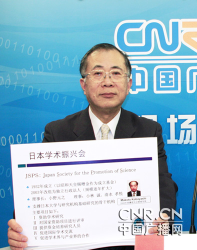 日本學術(shù)振興會北京代表處所長 佐佐木衛(wèi)(左) 本臺記者 徐建娟(右) 日本學術(shù)振興會開展的活動范圍廣泛,但是其核心內(nèi)容是為科研人員的自主研究提供資助,以及建立并完善青年科研人員的培養(yǎng)體制。 現(xiàn)在本會推動的每一項科研項目,都在以某種形式與國外科研人員開展著合作?蒲械慕涣髋c探討,都是通過國際性學術(shù)論壇及研討會來進行的。 在培養(yǎng)青年科研人員方面,需要建立一個可在國際合作網(wǎng)絡(luò)環(huán)境中為他們的研究提供資助的體制。為此,日本學術(shù)振興會需要以各種形式開展國際交流活動。 本會不僅向海外派遣日本的科研人員,還邀請海外的科研人員到日本開展科研工作,設(shè)立了面向海外青年科研人員的外籍特別研究員項目和面向科研骨干的外籍聘用研究員項目等。通過JSPS的項目,2009年度本會從海外接納了5,778名科研人員,向海外派遣了6,636名日本科研人員。 主持人:學術(shù)振興會在項目運作方面都有哪些特點? 佐佐木衛(wèi):科研經(jīng)費的特點有兩個: 1.注重科研人員基于自由構(gòu)想開展的獨創(chuàng)性、先驅(qū)性研究。 在申請表中,要具體填寫研究目的、獨創(chuàng)性、研究組織、研究方法及所需經(jīng)費等事項。通過填寫申請表,可以起到進一步明確研究目的及方法的作用。 科研費的申請可以激勵科研人員基于個人的獨創(chuàng)性見解自主制定研究計劃,具有增強科研活力的功能,發(fā)揮自下而上推動日本學術(shù)研究的作用。 2.審查的公正性和公平性 本會把科研領(lǐng)域細分為人文科學、社會科學、環(huán)境與自然災(zāi)害、能源科學、物質(zhì)與材料科學、生物學等15個領(lǐng)域,每年聘請6,000名科研人員擔任審查工作。審查委員都是從相關(guān)學會中選出,審查工作可以說是舉全日本學術(shù)界之力。這種審查制度保證了審查的公正性和公平性。 主持人:日本學術(shù)振興會(JSPS)當前與哪些海外學術(shù)振興機構(gòu)有合作?其中,北京代表處與中國的哪些機構(gòu)有合作? 佐佐木衛(wèi):日本學術(shù)振興會與包括45個國家和2個國際組織在內(nèi)的88個學術(shù)振興機構(gòu)保持著合作關(guān)系。