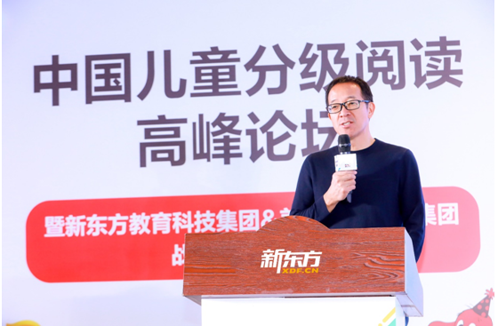 為此,新東方教育科技集團(tuán)與Scholastic美國學(xué)樂出版集團(tuán)于12月15日聯(lián)合主辦了“中國兒童分級閱讀高峰論壇暨新東方教育科技集團(tuán)于美國學(xué)樂出版集團(tuán)戰(zhàn)略合作發(fā)布會”。活動上,新東方教育科技集團(tuán)董事長俞敏洪,美國學(xué)樂出版集團(tuán)亞洲總裁Frank Wong,國家英語課程標(biāo)準(zhǔn)專家、教育部首批國培專家魯子問,首都師范大學(xué)外語學(xué)院英語教育系副教授任真,美國學(xué)樂出版集團(tuán)大中華區(qū)總經(jīng)理方澤坤,新東方教育科技集團(tuán)國際合作部總經(jīng)理陳莊,新東方分級閱讀(新東方小書童)高級總監(jiān)傅詩淇,美國學(xué)樂出版集團(tuán)中國培訓(xùn)與學(xué)習(xí)發(fā)展經(jīng)理任小池,Ivy Education幼兒園高級執(zhí)行總監(jiān)、哈佛大學(xué)多元智能教育認(rèn)證培訓(xùn)師Ryan Cardwell,新東方分級閱讀(新東方小書童)教研經(jīng)理、美國藍(lán)思官方認(rèn)證培訓(xùn)師朱麗華等眾多大咖深入剖析與探討了當(dāng)前英文分級閱讀的現(xiàn)狀,為中國兒童的英語啟蒙方法和分級閱讀的應(yīng)用場景指明了方向。