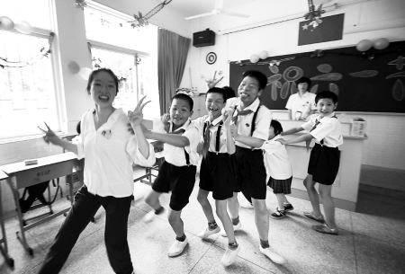 每年六一,長樂高級中學(xué)的同學(xué)總會來到一墻之隔的特教學(xué)校,與他們聯(lián)歡。歌唱表演結(jié)束,大哥哥大姐姐們就變成了孩子王,帶著弟弟妹妹們玩游戲。