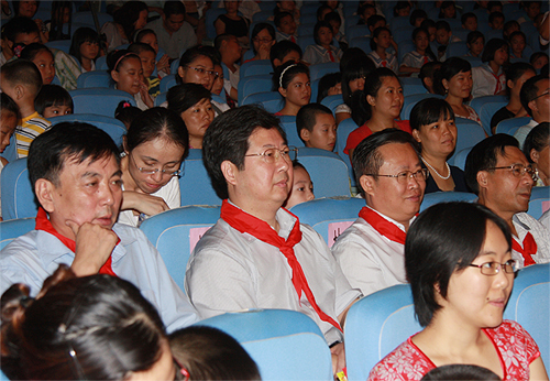 舞臺上,來自海南特殊教育學(xué)校的林冰小朋友雖然雙眼失明,但是卻用歌聲傳遞了她對所有小朋友的六一祝福。海南省委常委、組織部部長、省教育工委書記樓陽生,省人大常委會副主任、省總工會主席符興,副省長林方略,省政協(xié)副主席陳莉在省教育廳有關(guān)領(lǐng)導(dǎo)的陪同下觀看演出。演出最后,省領(lǐng)導(dǎo)和演員們共同登臺,合照留念。小演員們也為所有小朋友送上了祝福。