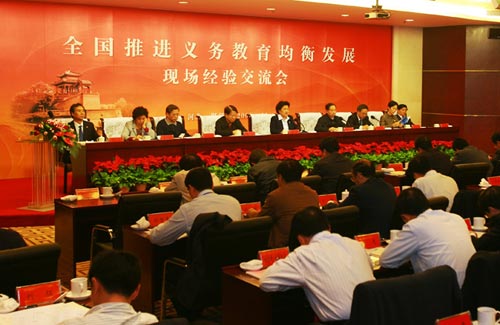 11月6日至7日,全國推進(jìn)義務(wù)教育均衡發(fā)展現(xiàn)場(chǎng)經(jīng)驗(yàn)交流會(huì)在河北省邯鄲市召開。中共中央政治局委員、國務(wù)委員劉延?xùn)|出席會(huì)議并作重要講話。她強(qiáng)調(diào),要深入貫徹科學(xué)發(fā)展觀,堅(jiān)持以人為本,采取有效措施,大力推進(jìn)義務(wù)教育均衡發(fā)展,讓更多學(xué)生享受高質(zhì)量教育,讓廣大人民群眾共享教育改革發(fā)展成果。 劉延?xùn)|指出,推進(jìn)義務(wù)教育均衡發(fā)展是社會(huì)主義制度的本質(zhì)要求和黨執(zhí)政為民理念的體現(xiàn),是貫徹落實(shí)《義務(wù)教育法》、促進(jìn)教育公平的必然要求,是辦好人民滿意教育的現(xiàn)實(shí)需要,是實(shí)施素質(zhì)教育的重要保證。要以內(nèi)涵發(fā)展為導(dǎo)向,推進(jìn)素質(zhì)教育,推動(dòng)教學(xué)內(nèi)容和方法改革,減輕學(xué)生課業(yè)負(fù)擔(dān),增強(qiáng)學(xué)生身體素質(zhì),全面提高義務(wù)教育質(zhì)量。要加大對(duì)農(nóng)村、貧困地區(qū)、老區(qū)、邊疆民族地區(qū)的支持力度,提高農(nóng)村義務(wù)教育發(fā)展水平,保障困難群體平等接受義務(wù)教育,不斷縮小區(qū)域、城鄉(xiāng)發(fā)展差距。要推動(dòng)區(qū)域內(nèi)教育資源合理配置,建設(shè)高素質(zhì)教師隊(duì)伍,促進(jìn)優(yōu)質(zhì)資源共享,努力辦好每一所學(xué)校。要推進(jìn)體制機(jī)制創(chuàng)新,完善質(zhì)量評(píng)價(jià)體系和督導(dǎo)制度,形成促進(jìn)義務(wù)教育均衡發(fā)展的長(zhǎng)效機(jī)制。 劉延?xùn)|強(qiáng)調(diào),各級(jí)政府要高度重視,采取措施,把推進(jìn)義務(wù)教育均衡發(fā)展作為公共服務(wù)的重要職責(zé),作為重大民生工程,切實(shí)抓緊抓好。要加大投入,完善經(jīng)費(fèi)保障機(jī)制。要加強(qiáng)指導(dǎo)、監(jiān)督和檢查,促進(jìn)學(xué)校教學(xué)質(zhì)量、管理水平、特色文化和校風(fēng)學(xué)風(fēng)建設(shè)實(shí)現(xiàn)新提高。要大力宣傳義務(wù)教育均衡發(fā)展的政策措施和先進(jìn)典型,營造良好社會(huì)輿論氛圍。 教育部部長(zhǎng)袁貴仁出席會(huì)議并講話。他要求,各地要認(rèn)真學(xué)習(xí)、深刻領(lǐng)會(huì)中共中央政治局委員、國務(wù)委員劉延?xùn)|在此次會(huì)議上的重要講話精神,把義務(wù)教育作為教育改革與發(fā)展的重中之重,把均衡發(fā)展作為義務(wù)教育的重中之重,把義務(wù)教育均衡發(fā)展作為國家推動(dòng)教育發(fā)展的奠基工程和貫徹落實(shí)《義務(wù)教育法》的重要工程,進(jìn)一步完善政策措施,加大工作力度,切實(shí)抓緊抓好抓出成效。他強(qiáng)調(diào),要以科學(xué)發(fā)展觀為指導(dǎo),突出抓好義務(wù)教育均衡發(fā)展的重點(diǎn)環(huán)節(jié)。一是明確職責(zé)任務(wù),把推進(jìn)義務(wù)教育均衡發(fā)展納入經(jīng)濟(jì)社會(huì)發(fā)展規(guī)劃。以縣域內(nèi)實(shí)現(xiàn)均衡為工作重點(diǎn),大力推進(jìn)縣域內(nèi)義務(wù)教育均衡發(fā)展。二是加強(qiáng)隊(duì)伍建設(shè),均衡配置校長(zhǎng)和教師資源。通過體制機(jī)制創(chuàng)新,加大義務(wù)教育階段校長(zhǎng)和教師的培訓(xùn)、交流力度。三是提高教育質(zhì)量,促進(jìn)廣大學(xué)生德智體美全面發(fā)展。更加關(guān)注義務(wù)教育的內(nèi)涵發(fā)展,在制定政策、配置資源、安排資金時(shí)優(yōu)先保障提高教育教學(xué)質(zhì)量的需要。四是完善政策措施,保障全體學(xué)生平等接受義務(wù)教育。完善對(duì)家庭經(jīng)濟(jì)困難學(xué)生的資助體系,落實(shí)保障進(jìn)城務(wù)工人員隨遷子女接受義務(wù)教育的政策措施,建立農(nóng)村留守兒童關(guān)愛服務(wù)體系,加大對(duì)少數(shù)民族地區(qū)義務(wù)教育的支持,將殘疾兒童少年義務(wù)教育全面納入公共財(cái)政保障范圍。五是強(qiáng)化督導(dǎo)評(píng)估,建立義務(wù)教育均衡發(fā)展激勵(lì)機(jī)制。 河北省長(zhǎng)胡春華在會(huì)上致辭,他表示,河北省委、省政府始終把教育擺在優(yōu)先發(fā)展的戰(zhàn)略地位,立足河北實(shí)際制定了一系列政策措施,全省各級(jí)各類教育實(shí)現(xiàn)了長(zhǎng)足發(fā)展。特別是堅(jiān)持把推進(jìn)義務(wù)教育均衡發(fā)展作為落實(shí)科學(xué)發(fā)展觀的重要舉措,作為促進(jìn)社會(huì)公平和諧的重要內(nèi)容,積極探索義務(wù)教育均衡發(fā)展的新路子。我們將以此次現(xiàn)場(chǎng)會(huì)在河北召開為契機(jī),認(rèn)真學(xué)習(xí)兄弟省市的先進(jìn)經(jīng)驗(yàn),努力改進(jìn)工作,推動(dòng)我省教育工作邁上新的臺(tái)階。 副省長(zhǎng)龍莊偉在會(huì)上介紹了河北省推進(jìn)義務(wù)教育均衡發(fā)展的經(jīng)驗(yàn)。近年來,河北省堅(jiān)持政府統(tǒng)籌,不斷強(qiáng)化政府行為,為推進(jìn)義務(wù)教育均衡發(fā)展提供保障,2005年,省委、省政府做出《關(guān)于加強(qiáng)教育工作的決定》,制定了推進(jìn)義務(wù)教育均衡發(fā)展相關(guān)政策措施;2007年,省政府部署了以學(xué)區(qū)建設(shè)改革促進(jìn)農(nóng)村義務(wù)教育均衡發(fā)展工作;2008年,省政府又制定了《關(guān)于推進(jìn)義務(wù)教育均衡發(fā)展
