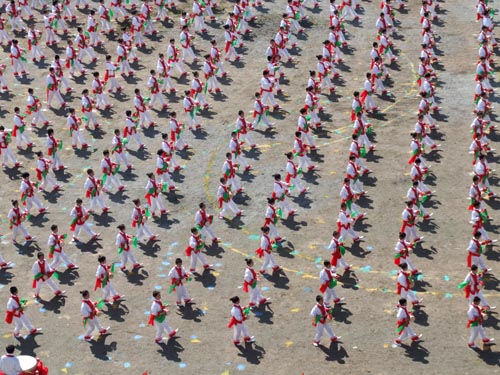 開幕式上,實驗小學(xué)和站前小學(xué)組織了千余人參與的大型團(tuán)體操表演。