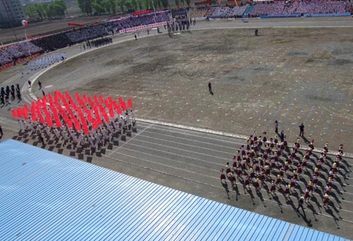中廣網(wǎng)北京5月21日消息 20日,公主嶺市文體中心運動場彩旗飄揚,樂聲嘹亮,整個運動場沉浸在青春與激情的海洋中,上萬名學(xué)生共同見證了公主嶺市中小學(xué)生2010年“東方眼鏡杯”田徑運動會開幕式。公主嶺市市委、市政府、市人大、市政協(xié)、市紀(jì)檢委、市關(guān)工委、市教育局、市體育局、各鄉(xiāng)鎮(zhèn)黨委和四平市教育局等單位的領(lǐng)導(dǎo)出席了開幕式。