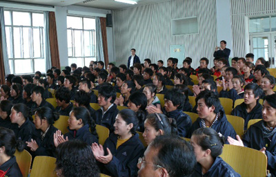 張維平副校長代表青海民族大學黨委行政對來自玉樹職業(yè)技術學校的老師和107位同學表示熱烈的歡迎,高度贊揚了災區(qū)學生在地震面前表現(xiàn)出的勇敢堅強、團結友愛、互幫互助的可貴精神。勉勵同學們努力學習,頑強拼搏,掌握更多的科學文化知識,為重建美好家園做出自己的貢獻,報答社會各界的無私援助和鼎力相助。