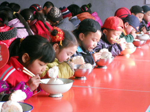 扶風(fēng)縣法門鎮(zhèn)云塘小學(xué)的孩子吃上了營(yíng)養(yǎng)午餐,目前,扶風(fēng)縣營(yíng)養(yǎng)改善計(jì)劃學(xué)生達(dá)3_6萬(wàn)人