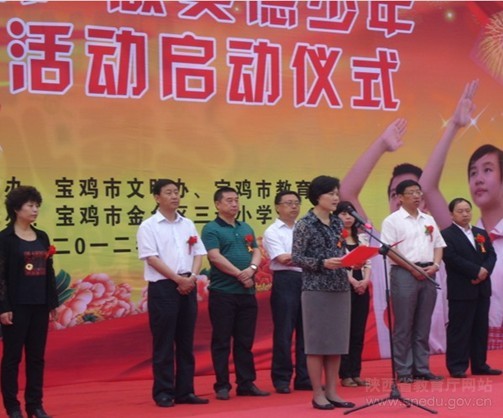 中廣網(wǎng)陜西5月30日消息 據(jù)《陽光報——陽光網(wǎng)》報道 2012年“六一”國際兒童節(jié)前夕,寶雞市文明辦、市教育局積極響應中央文明委、省文明辦號召,在全市正式啟動了“學習雷鋒、做美德少年”網(wǎng)上簽名寄語活動。5月28日上午,該市“學習雷鋒、做美德少年”網(wǎng)上簽名寄語活動啟動儀式在金臺區(qū)三迪小學隆重舉行。儀式由該市教育局局長蘇永興主持,寶雞市委常委、宣傳部長龔曉燕,金臺區(qū)委書記李興安及金臺區(qū)教體局領導和三迪小學全體學生1500余人參加儀式,共同啟動了全市網(wǎng)上簽名寄語活動。