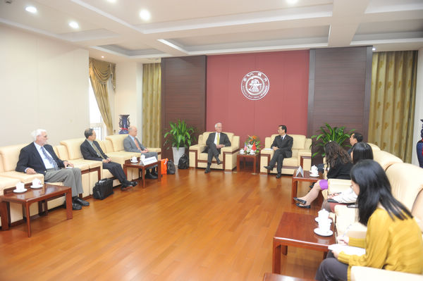 隨同Dr. Robert A Easter來訪的有,UIUC科研助理副校長Dr. K Jimmy Hsia,助理教務(wù)長、國際合作主管Dr. Wolfgang Schloer,國際研究合作執(zhí)行主任 Dr. Jesse Delia,上海交大電信學(xué)院常務(wù)副院長毛軍發(fā),國際合作與交流處副處長郭亮等參加了會見。