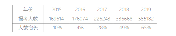 據正保遠程教育旗下中華會計網校數據圖顯示,近幾年來稅務師的報名人數逐年升高,尤其是2019年,稅務師的報名人數同比增長竟高達65%,再創(chuàng)歷史新高。按照這樣的增速計算,在2020年,稅務師報名人數或將逼近90萬人,突破百萬大關也近在咫尺,有望成為下一個注冊會計師。