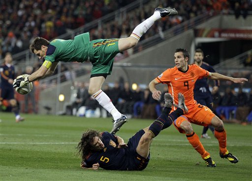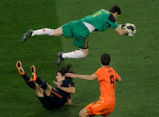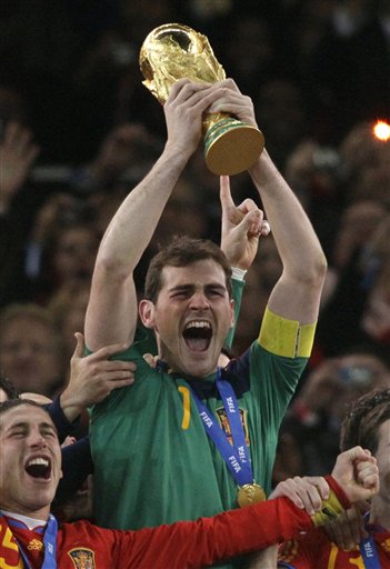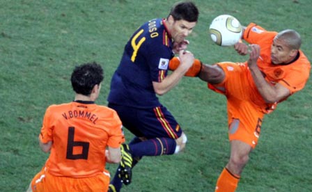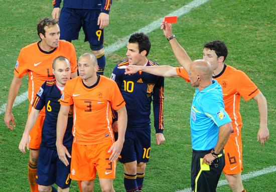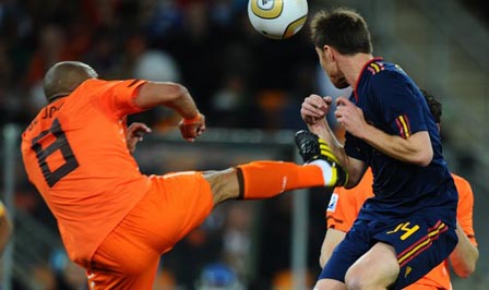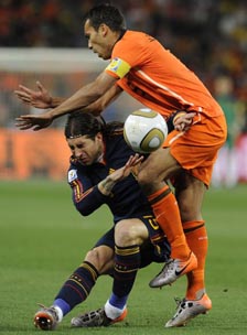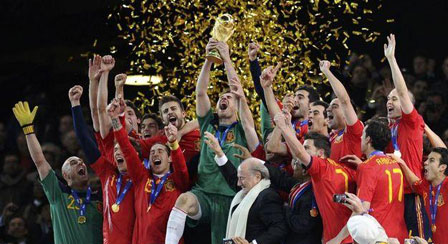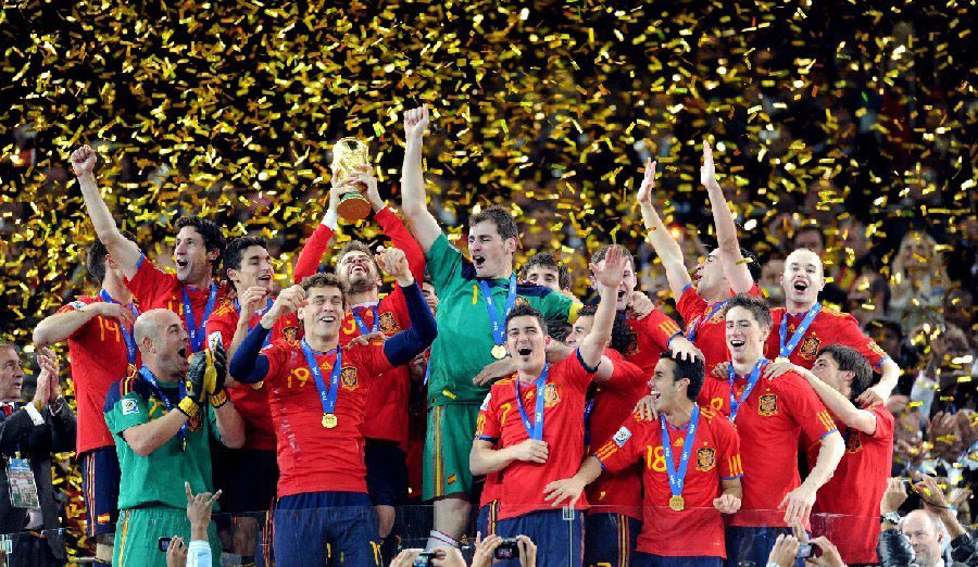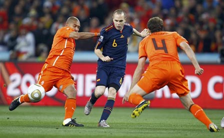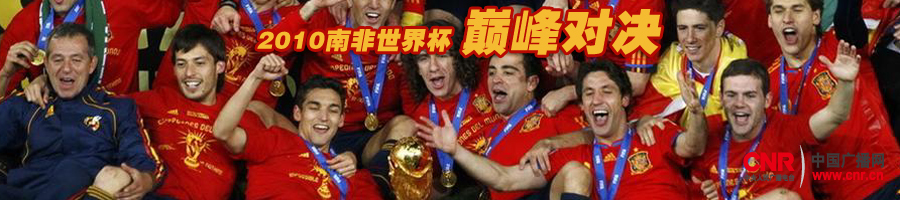 西班牙隊(duì)?wèi){借伊涅斯塔在加時賽的一記漂亮的凌空抽射破門,以1-0戰(zhàn)勝荷蘭隊(duì),歷史上第一次捧起了大力神杯,也成為世界杯歷史上第8支冠軍球隊(duì)! [第115分鐘]伊涅斯塔怒射破門 西班牙1-0領(lǐng)先荷蘭 90分鐘雙方戰(zhàn)平進(jìn)入加時 羅本比利亞均錯失破門良機(jī)[第83分鐘]羅本快速突入禁區(qū)被門將撲住再失良機(jī) [第65分鐘]羅本單刀錯失破門良機(jī) 卡西神勇力保球門 [第14分鐘]荷蘭隊(duì)前鋒范佩西吃決賽首張黃牌 |