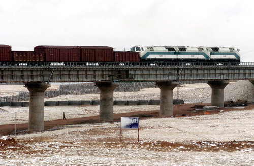 一列貨車在唐古拉山凍土區(qū)行駛