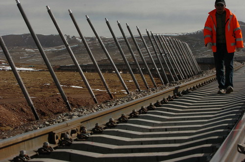 為了破解多年來困擾世界高原鐵路建設(shè)領(lǐng)域的凍土問題,我國鐵路科研部門早在上個(gè)世紀(jì)60年代初就組織科技力量在青藏高原海拔4800多米的風(fēng)火山一帶,建立了凍土科研基地——風(fēng)火山觀測(cè)站。40余年來,科研人員在雪山下的凍土試驗(yàn)段堅(jiān)持觀察記錄氣象和凍土變化,為青藏鐵路建設(shè)積累了1200多萬個(gè)寶貴數(shù)據(jù)。青藏鐵路是世界凍土區(qū)工程建設(shè)領(lǐng)域第一次大規(guī)模地、全面地綜合應(yīng)用多種工程措施解決凍土問題的典范。全新的解決思路和工程科技創(chuàng)新標(biāo)志著青藏鐵路多年凍土工程實(shí)踐已處于世界領(lǐng)先水平。 新華社記者侯德強(qiáng)攝