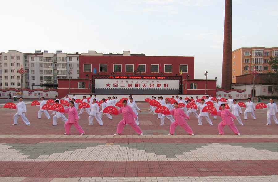 村民在練太極扇(央廣網(wǎng)發(fā) 大辛二村供圖)