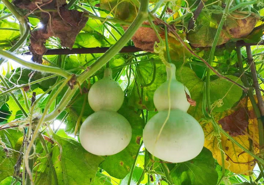 一家一戶的庭院,面積不大,但如果發(fā)揮好作用,就能夠帶來(lái)相對(duì)穩(wěn)定的收入。村書記王彬給記者算了一筆賬,葫蘆主要是在村民庭院房前屋后閑置地方種植,占地小,成本低。每棵葫蘆投入僅2元,預(yù)計(jì)可產(chǎn)生經(jīng)濟(jì)效益40元,而且如進(jìn)行深加工,制成手工藝品后,還可增值5-20倍。