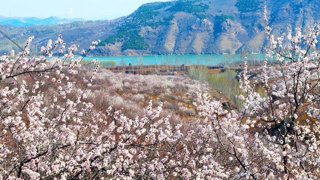 高鐵列車行駛在朝陽(yáng)市龍城區(qū)大平房鎮(zhèn)境內(nèi),穿梭于漫山遍野的杏花林中,構(gòu)成一幅動(dòng)人的春日畫卷。