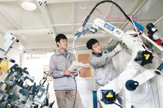12月2日,在中德(沈陽)高端裝備制造產(chǎn)業(yè)園的沈陽大族賽特維機(jī)器人公司工業(yè)機(jī)器人生產(chǎn)車間,技術(shù)人員在調(diào)試為某國際品牌汽車企業(yè)定制生產(chǎn)的工業(yè)機(jī)器人。今年以來,該公司依托中德產(chǎn)業(yè)園發(fā)展平臺(tái),在高端裝備制造和智能制造領(lǐng)域取得了長足的發(fā)展,已經(jīng)在中德產(chǎn)業(yè)園推動(dòng)下成功與一家知名企業(yè)簽訂了近230萬元的訂單。截至11月,已提前完成年初計(jì)劃銷售任務(wù),同比增幅36%。