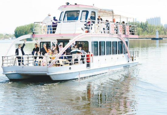 5月1日,眾多游客乘坐渾河“水上巴士”欣賞兩岸美景!拔逡弧毙¢L假,沈水灣、五里河和富民橋三大碼頭功能全面改造完善,為游客游覽渾河兩岸再添新方式。沈陽日報記者李浩攝