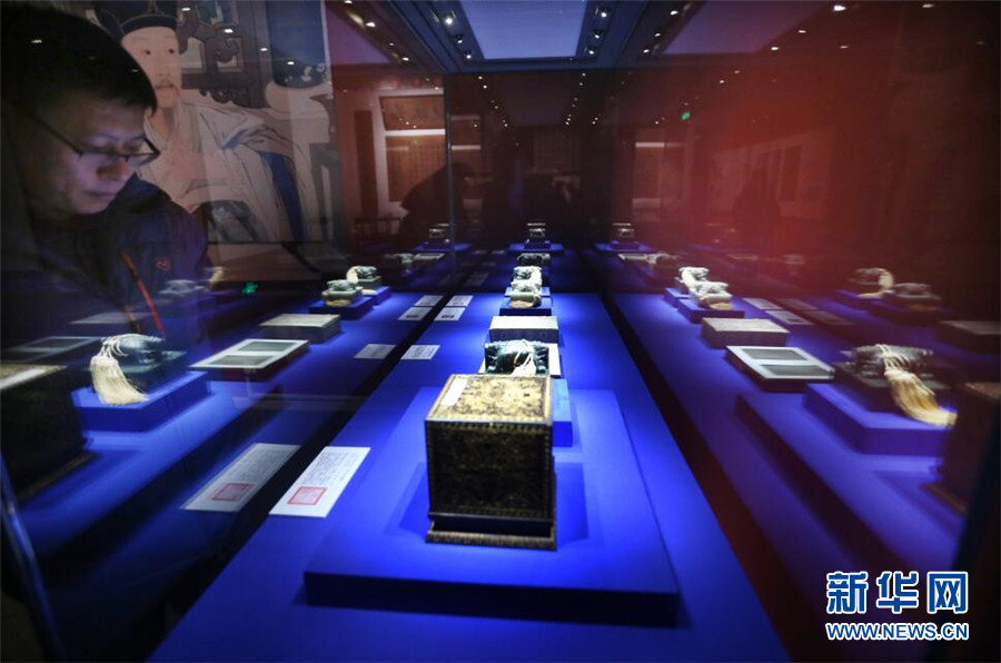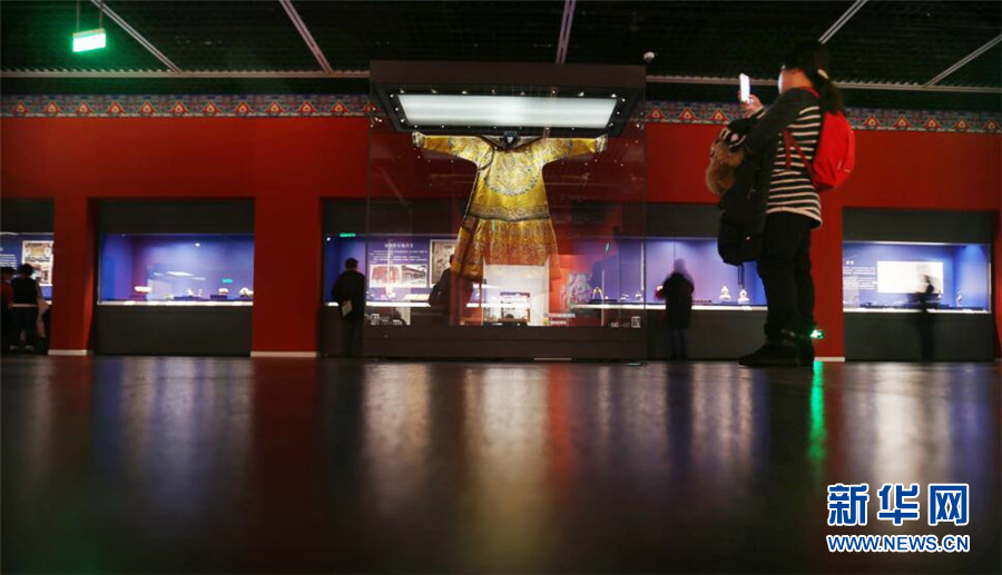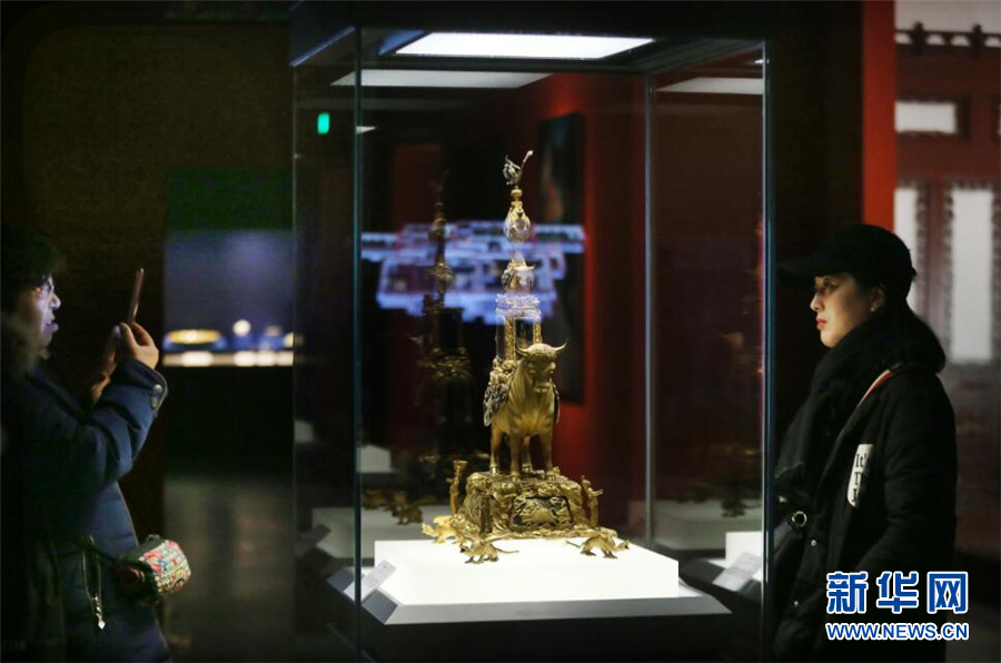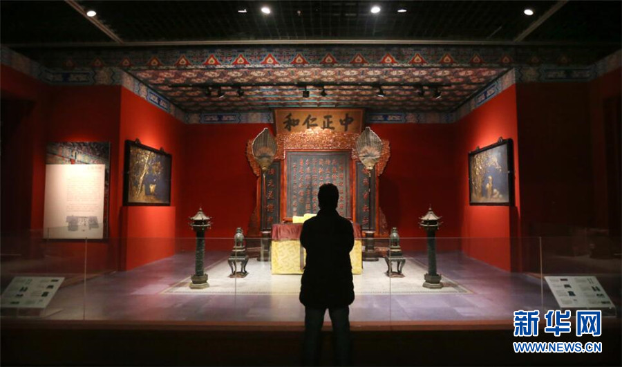 圖為市民在“龍?zhí)╁酚睢蕦m養(yǎng)心殿文物特展”上參觀。新華網(wǎng)姜冰攝 -