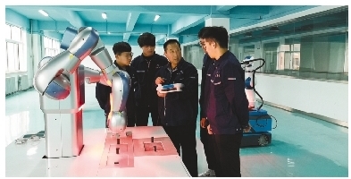 遼寧機(jī)電職業(yè)技術(shù)學(xué)院學(xué)生使用沈陽新松提供的設(shè)備進(jìn)行實(shí)踐。