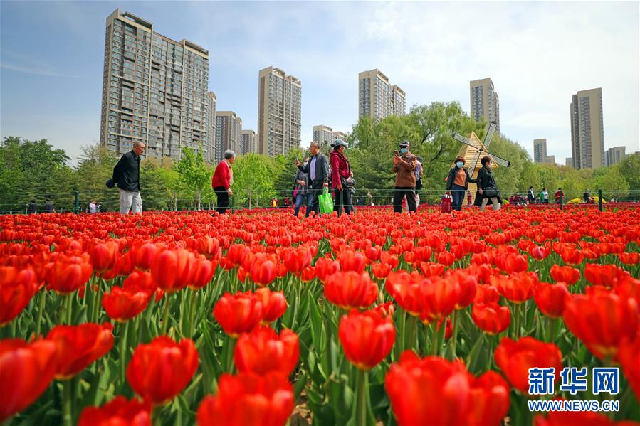 近日,在沈陽市和平區(qū)沈水灣公園,成片的郁金香競相開放,吸引眾多市民賞花游玩。新華社記者 楊青 攝