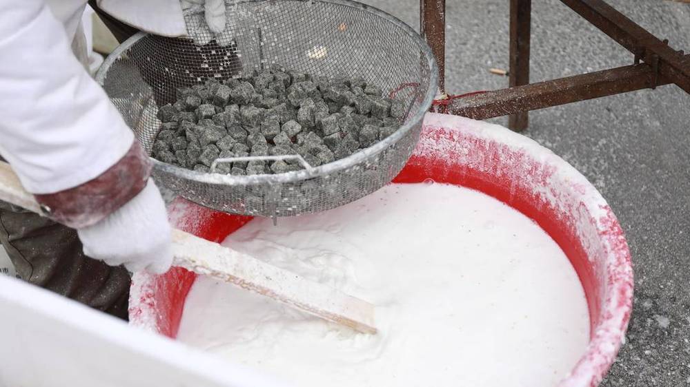 凍硬的餡料如小石子般不易變形,沾水后能均勻吸附糯米粉,實(shí)現(xiàn) “滾雪球” 式層層裹粉,保證元宵圓潤飽滿