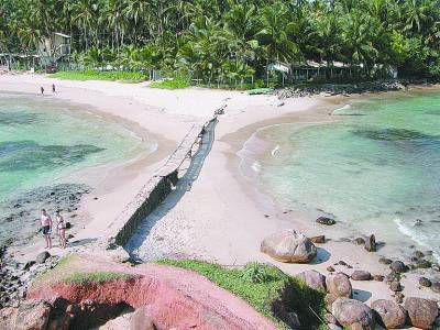 從科倫坡既有長途車也有火車去美蕊沙,沿著濱海公路或鐵路坐車去美蕊沙,你會發(fā)現(xiàn)這是一條非常美的路線:常常只看得到樹林、大海,看不到人煙、建筑,鐵路離海水最近的地方只有二三十米遠(yuǎn)。其實(shí)這條路線上,美蕊沙這樣的小村子有很多。這里的沙灘不像有些出名的地方的沙灘那樣寬闊、綿長,而只是幾百米或稍長一點(diǎn)的一彎月牙,但水清沙白,椰樹成蔭,好風(fēng)不斷,稱得上一流。而它們的清凈無人、容顏樸素,在旅游開發(fā)的威力幾乎滲透到世界每一個(gè)角落的今日,更是難得。