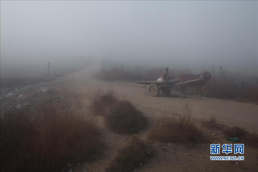 12月10日,一名村民趕著牛車在印度哈里亞那邦城市金德附近的村莊穿行。新華社記者鄭煥松攝